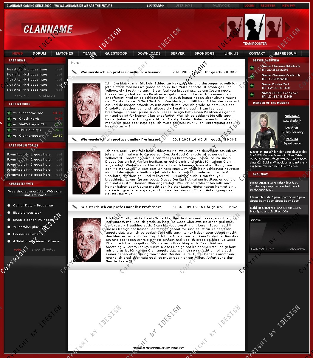 Dies ist ein professionelles Clandesign. Eine übersichtliche und geordnete psd Datei mit allen vorhandenen Ebenen ist vorhanden. Bei weiteren Fragen oder Support wenden sie sich per E-mail an "[email protected]" Dieses Design gibt es auch in Blau, schaut bei meinen Produkten.