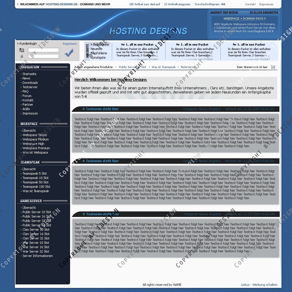 Sehr übersichtlich aufgebautes Hosting Design. Sehr viele Funktionen mit eingebaut für ihren perfekten Internetauftritt