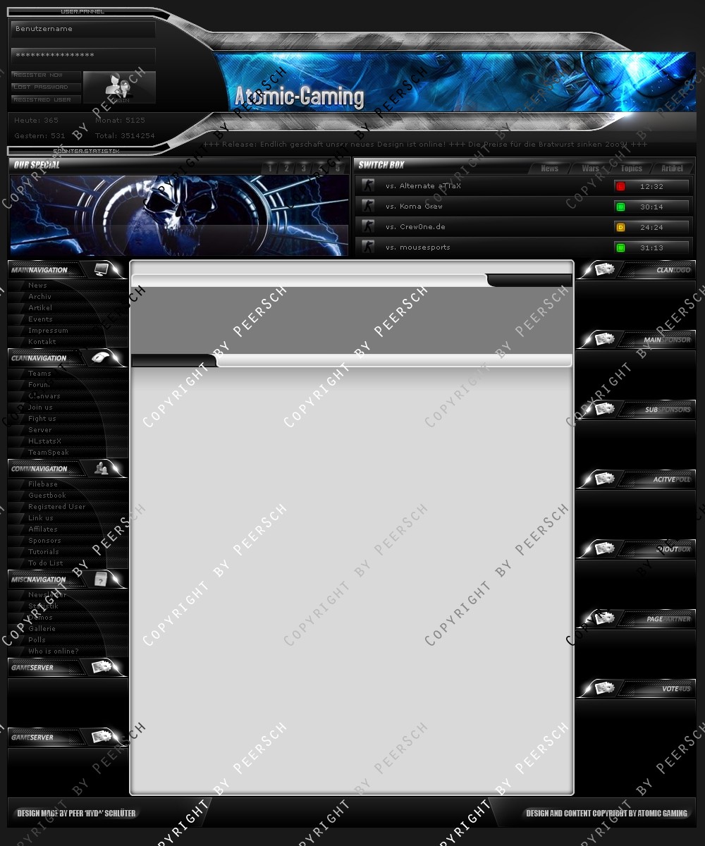 Was Sie hier kaufen ist lediglich die PSD Datei, gerne kann ich es Ihnen gegen einen Aufpreis von 13€ an ein CMS Anpassen, zur Auswahl stehen hierbei: webSPELL, Clansphere, Teklab, Devilz und andere CMS auf Anfrage ohne Aufpreis.