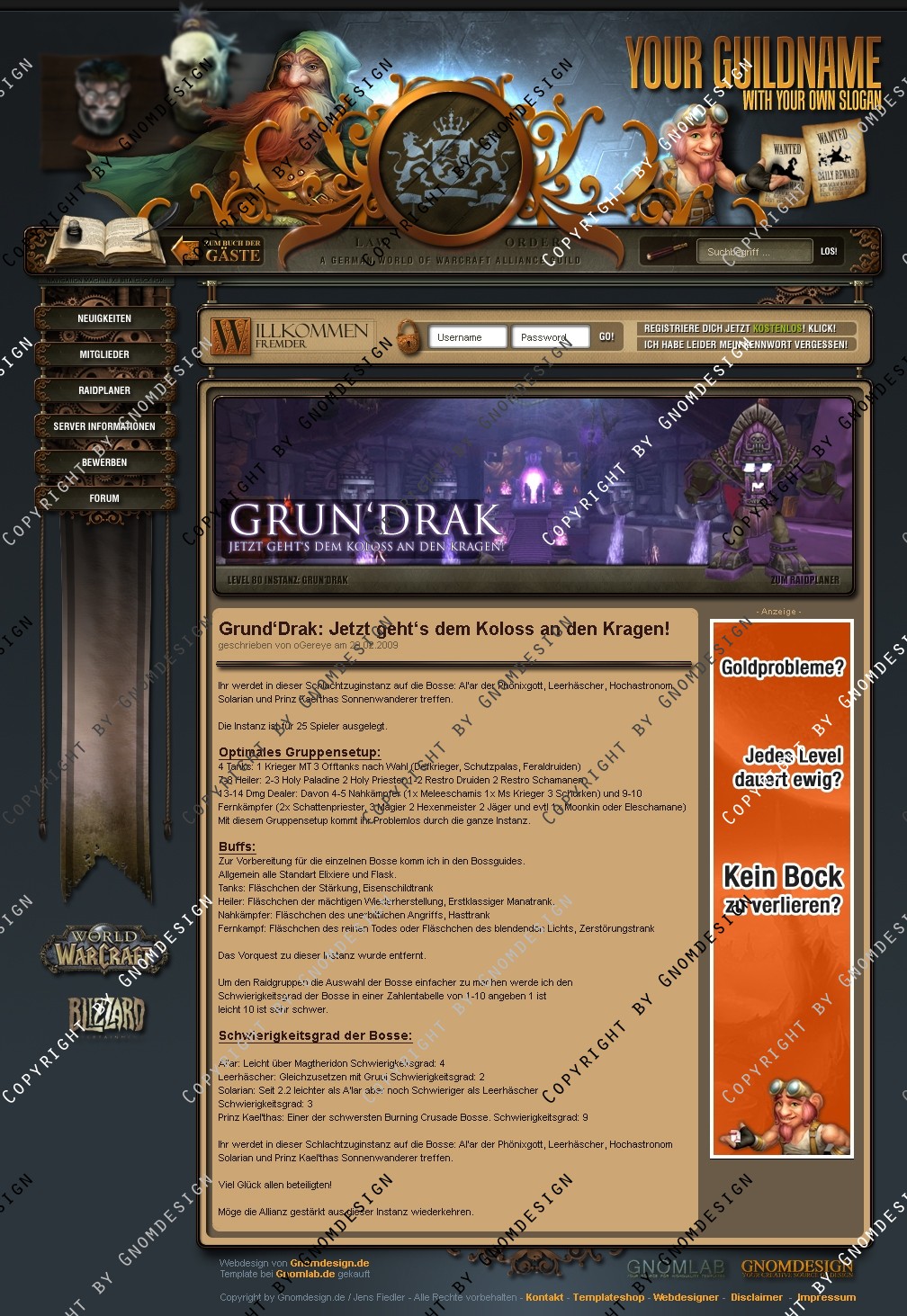 Wer ein einfaches aber schönes Gildendesign sucht, wird eventuell mit diesem Design glücklich. Die Ebenen sind in Ordner strukturiert und Schriften/ Texte leicht änderbar.