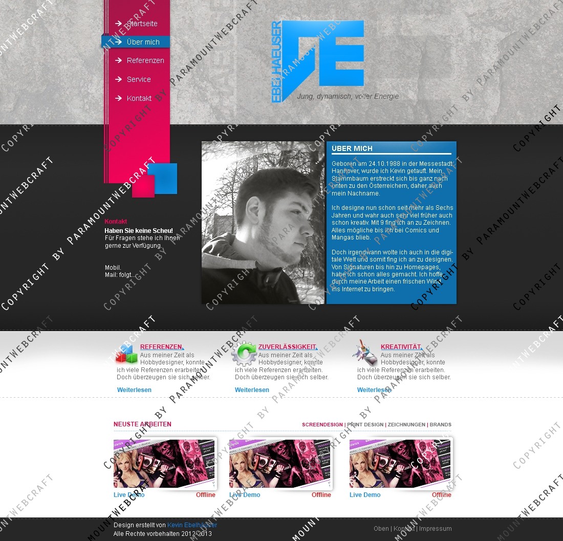 In diesem Packet erhalten Sie eine Photoshop Datei (.psd) mit einem Portfolio das vielseitig einsetzbar ist. Gedacht ist es für Mediengestalter aller Art die ein Portfolio zum Einstieg brauchen. Das Portfolio enthält auch Unterseiten wie z.B. Über Mich und Referenzen.