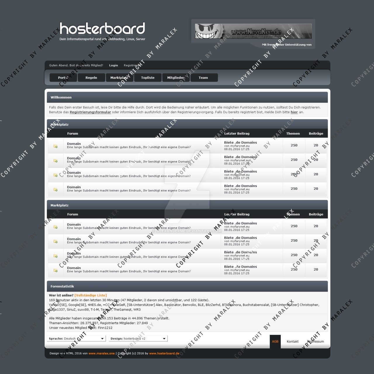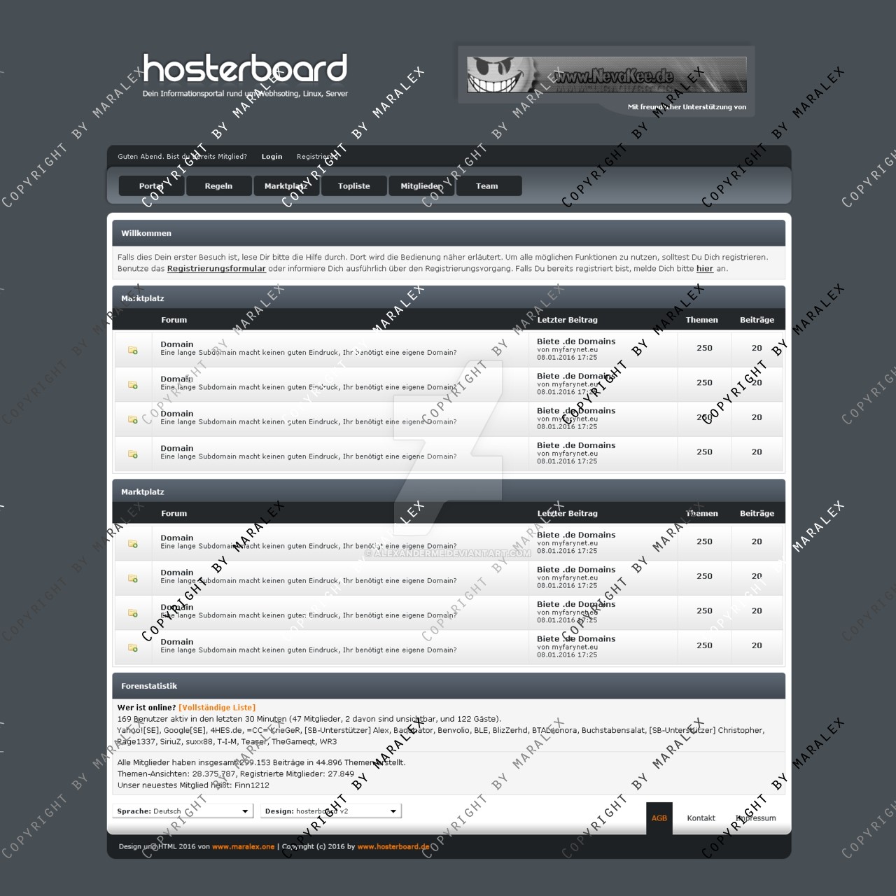 Ich verkaufe hier ein wunderschönes dunkles Layout für ein Communityforum bzw. Forum. Das ganze gibt es als .psd und direkt nach Bezahlung per Download hier.