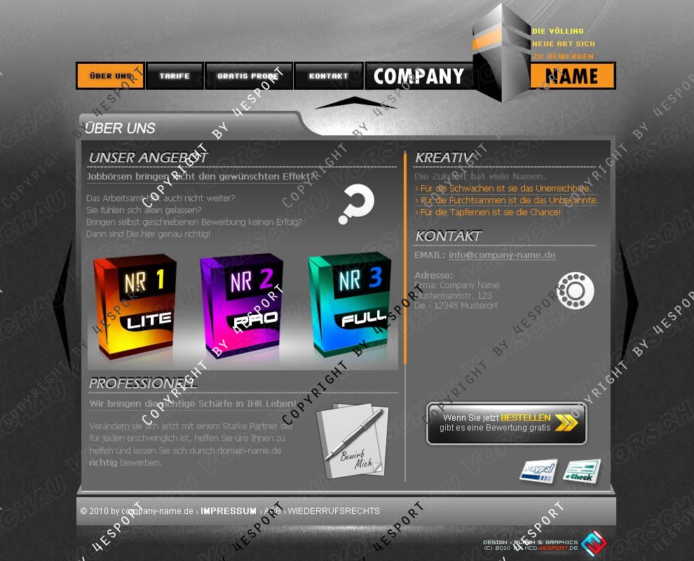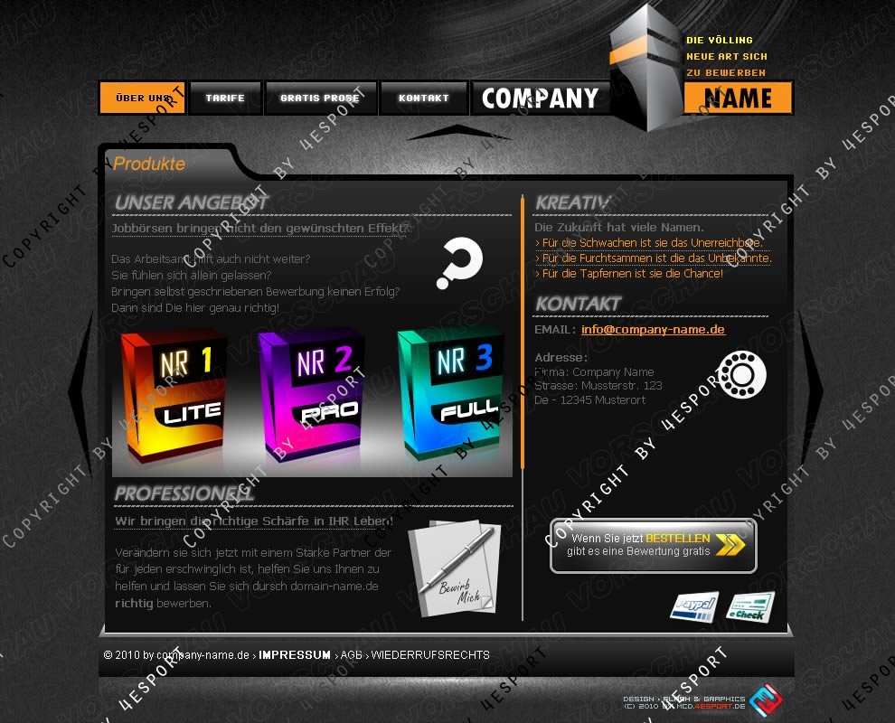 › Exklusiv, Clean & ohne vielle Effekte, Farben Weiss, Schwarz, Grau & Oranje