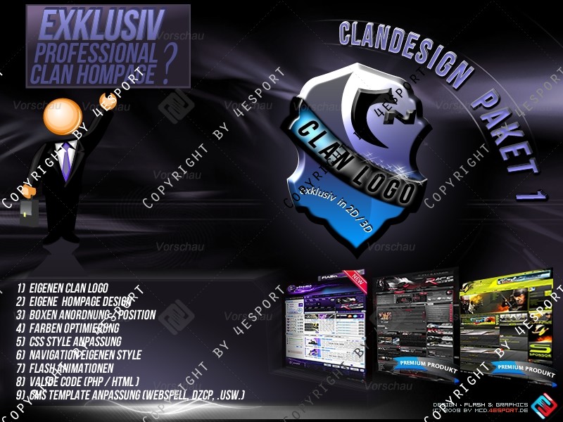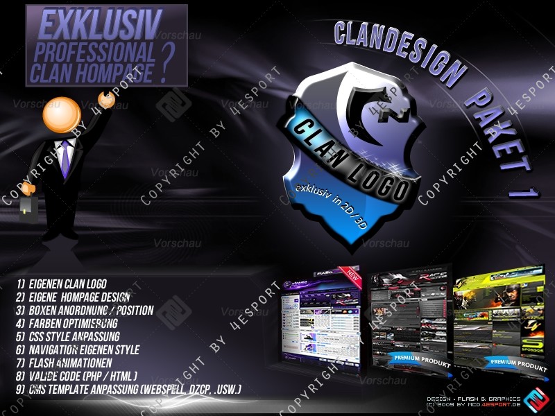 1) Eigene Clan Logo (in Wappen- Format oder Style: 2D, 3D, Flash Logo +Aufpreis)