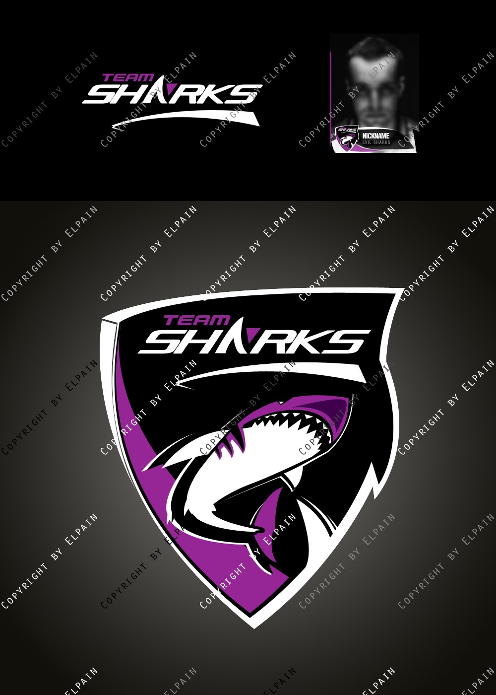 - Die .PSD Datei beinhaltet ALLE Ebenen als Formen, den original Team-Shark Schriftzug und eine kinderleichte Vorlage für den eigenen Clannamen. (Schriftarten liegen bei. S.o.)