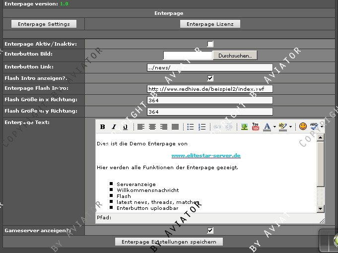 - Enterpage abschaltbar übers Adminmenü!!!!
