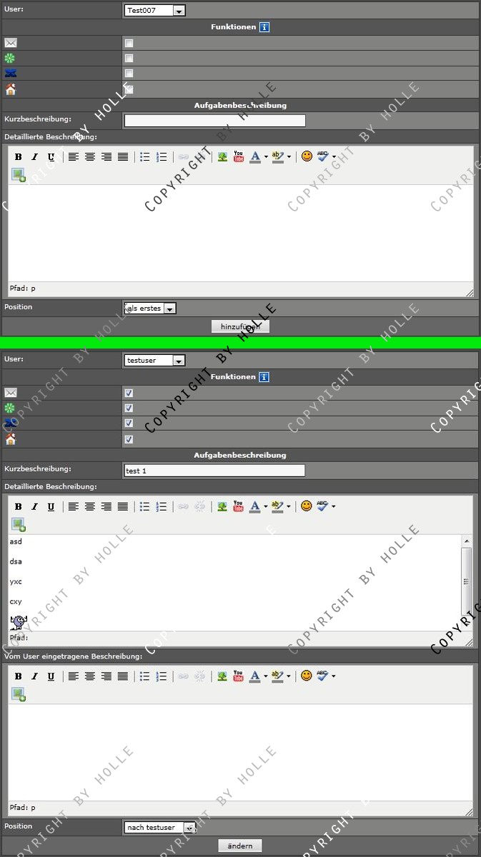 Bild 4: Oben: Formular zum eintragen einer neuen Aufgabe, Unten: Aufgabe editieren