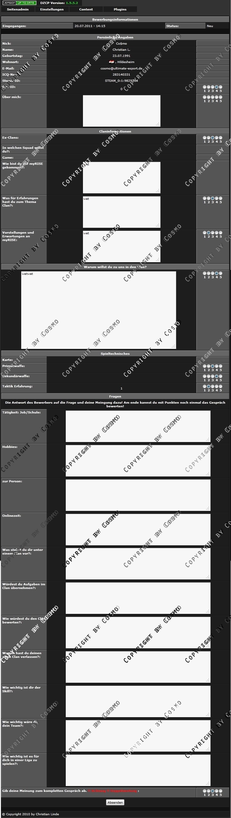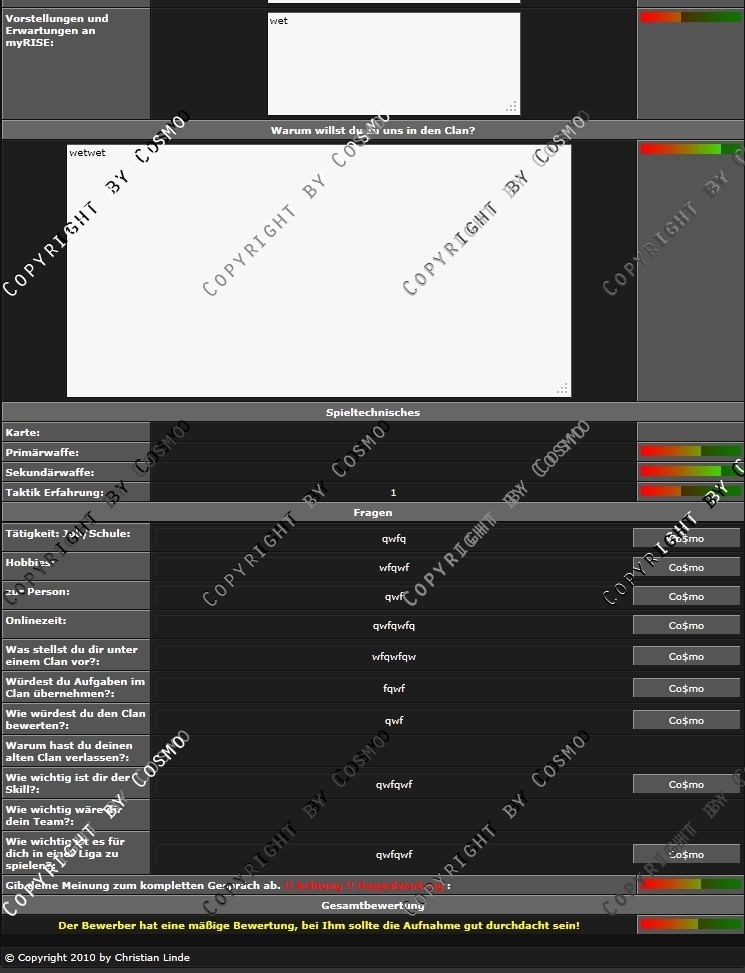 Im Adminbereich kann diese Bewerbung dann bei einzelnen Fragen bewertet werden.