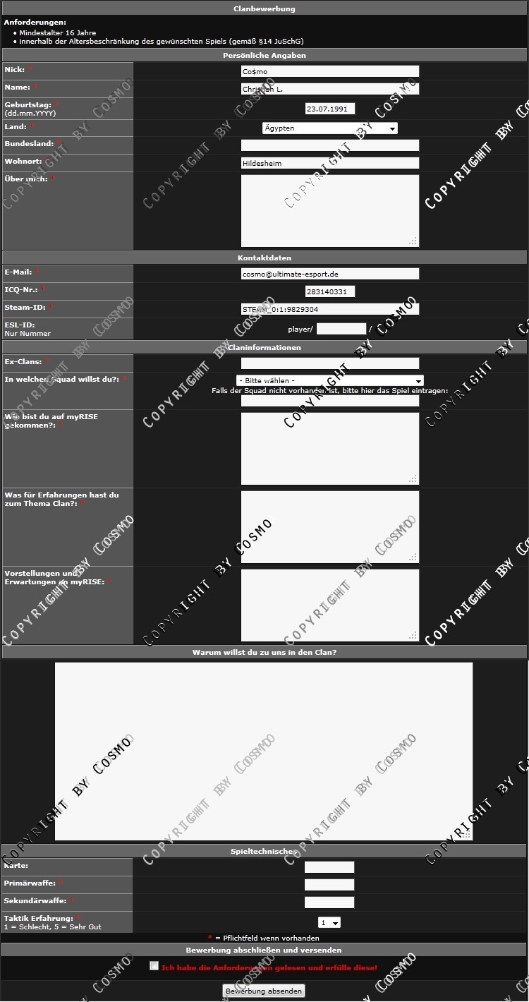 - SPAM Schutz. Jeder Registrierte User kann nur 1 Bewerbung im Umlauf haben!