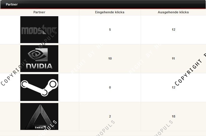 Dieser Mod erlaubt euch die ein und abgehenden Klicks von euren Partnern zu zählen, damit ihr sehen könnt welche Partnerschaften sich lohnen und welche nicht. Dabei werden nur die User gezählt die neu auf eure Homepage vermittelt wurden. Es wird beim erstellen bzw. beim editieren eines Partnerbuttons automatisch ein Link für den Partner erstellt den dieser auf seiner Webseite einbinden muss. Desweiteren lässt sich bei jedem Partner einstellen wohin der weitergeleitet werden soll, wenn er auf die Homepage kommt.