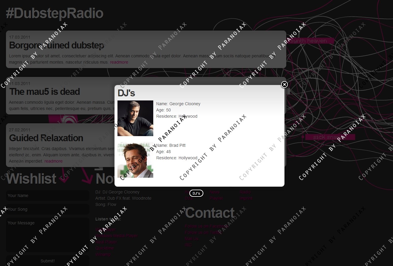 • Ajax Call für Radio, Dj's, Playlist und Imprint