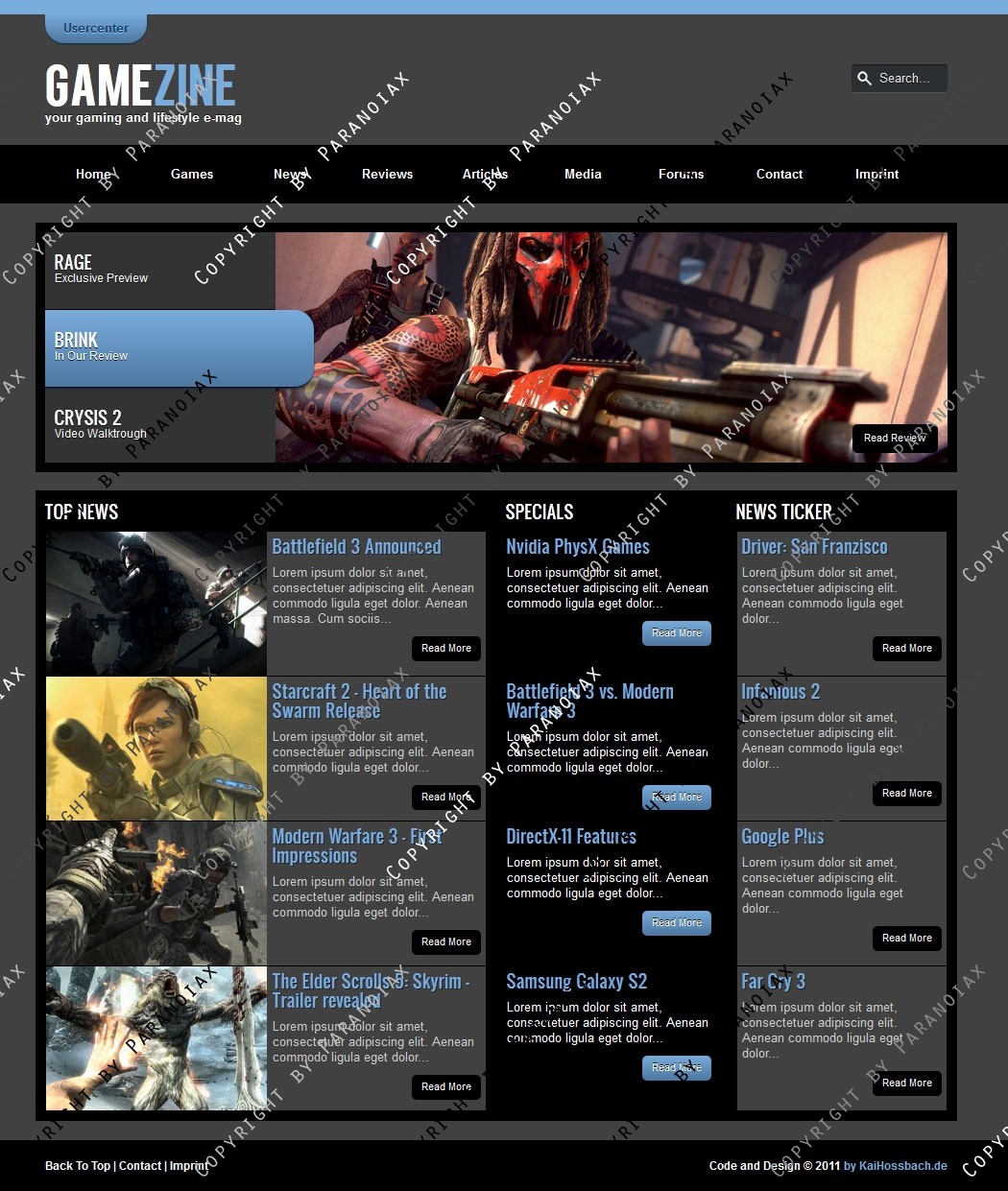 Auch als HTML Template erhältlich: http://www.clandesigns.de/templates/2748/gamezine-html5-css3-template/