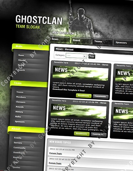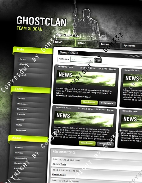 Wir verkaufen ein sehr schönes Ghost Clan Premium Template Design angepasst an die aktuelle ClanSphere Version: 2011.3