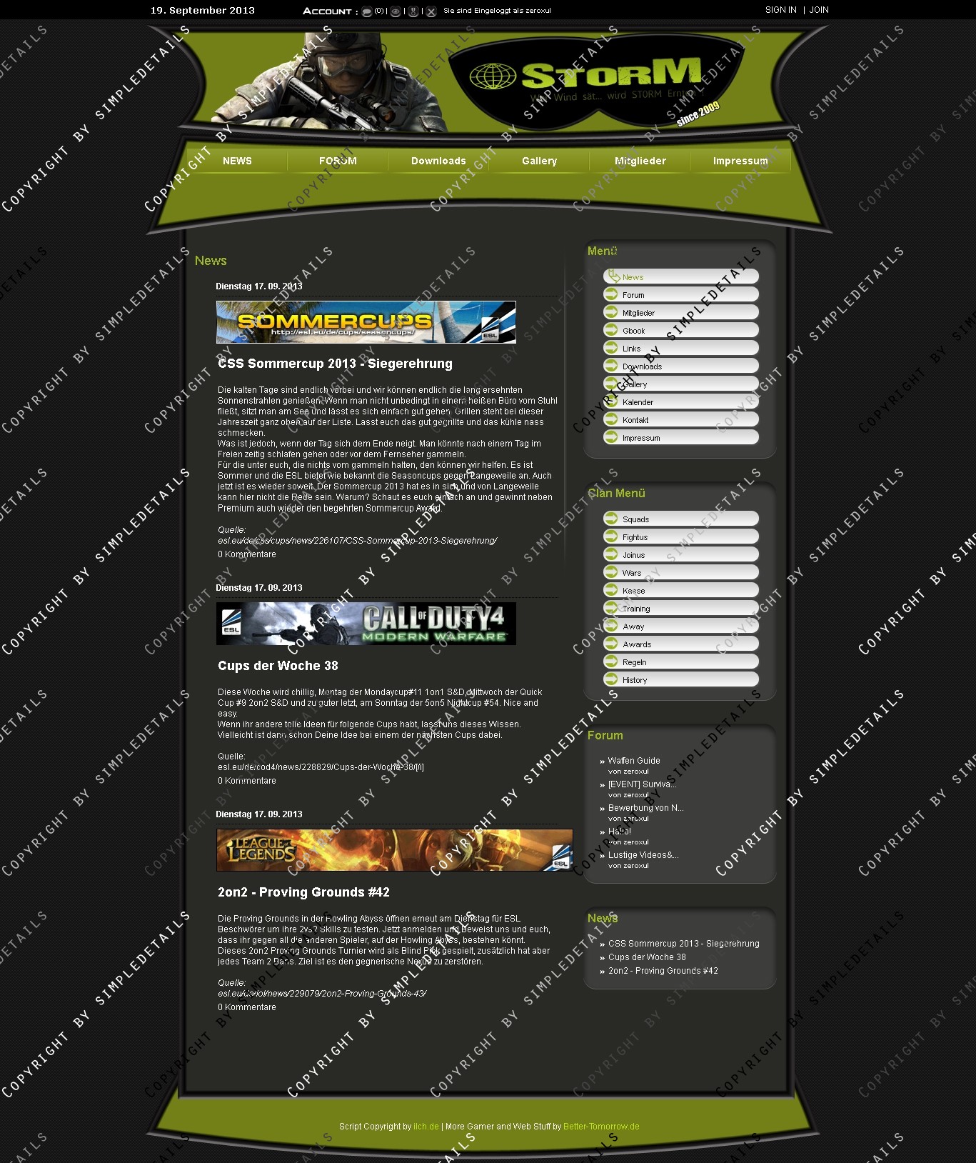 Im Header ist ein Clan-Logo eingebunden, das auch in der .PSD Datei vorhanden ist, und frei angepasst werden kann.