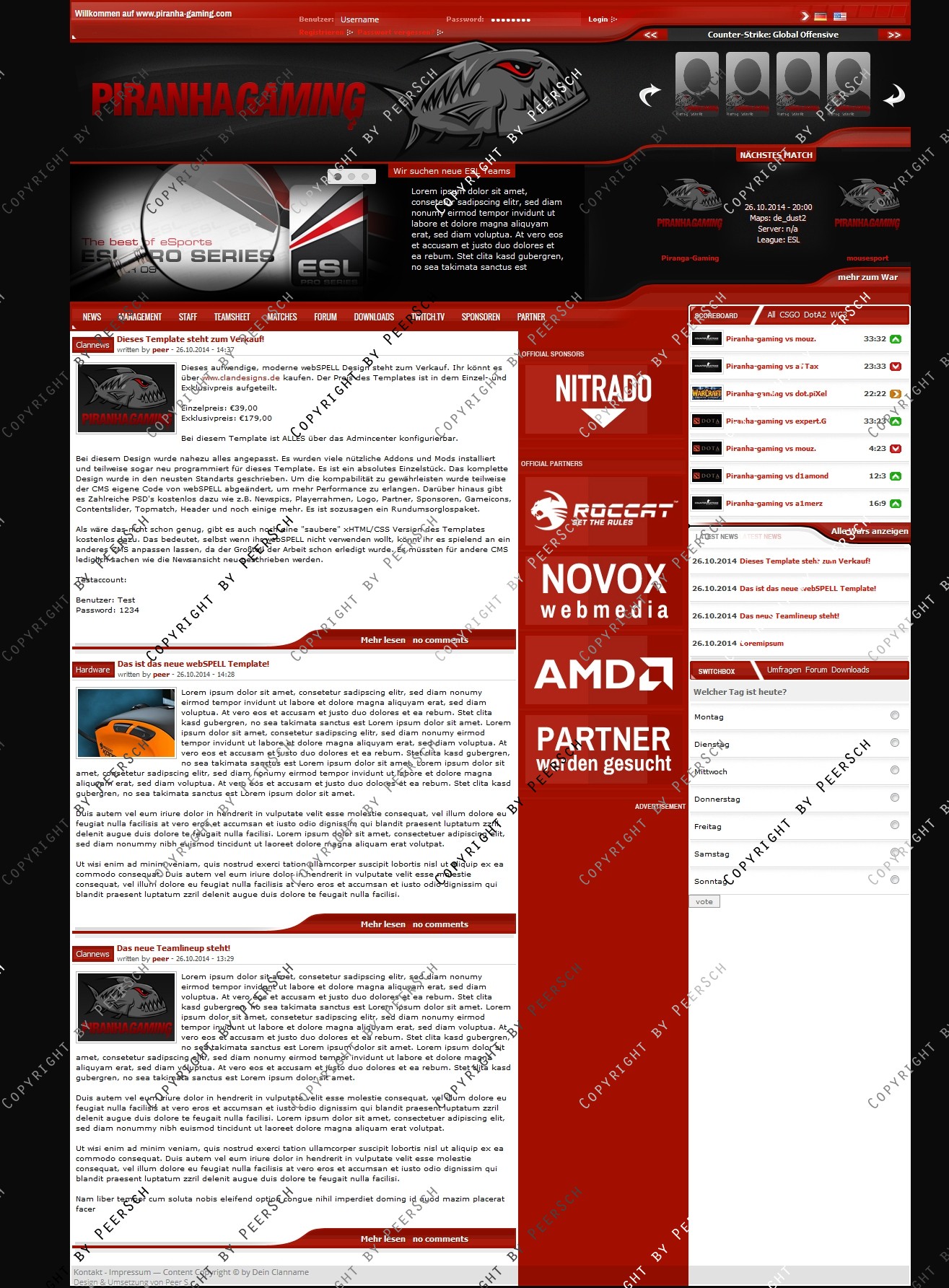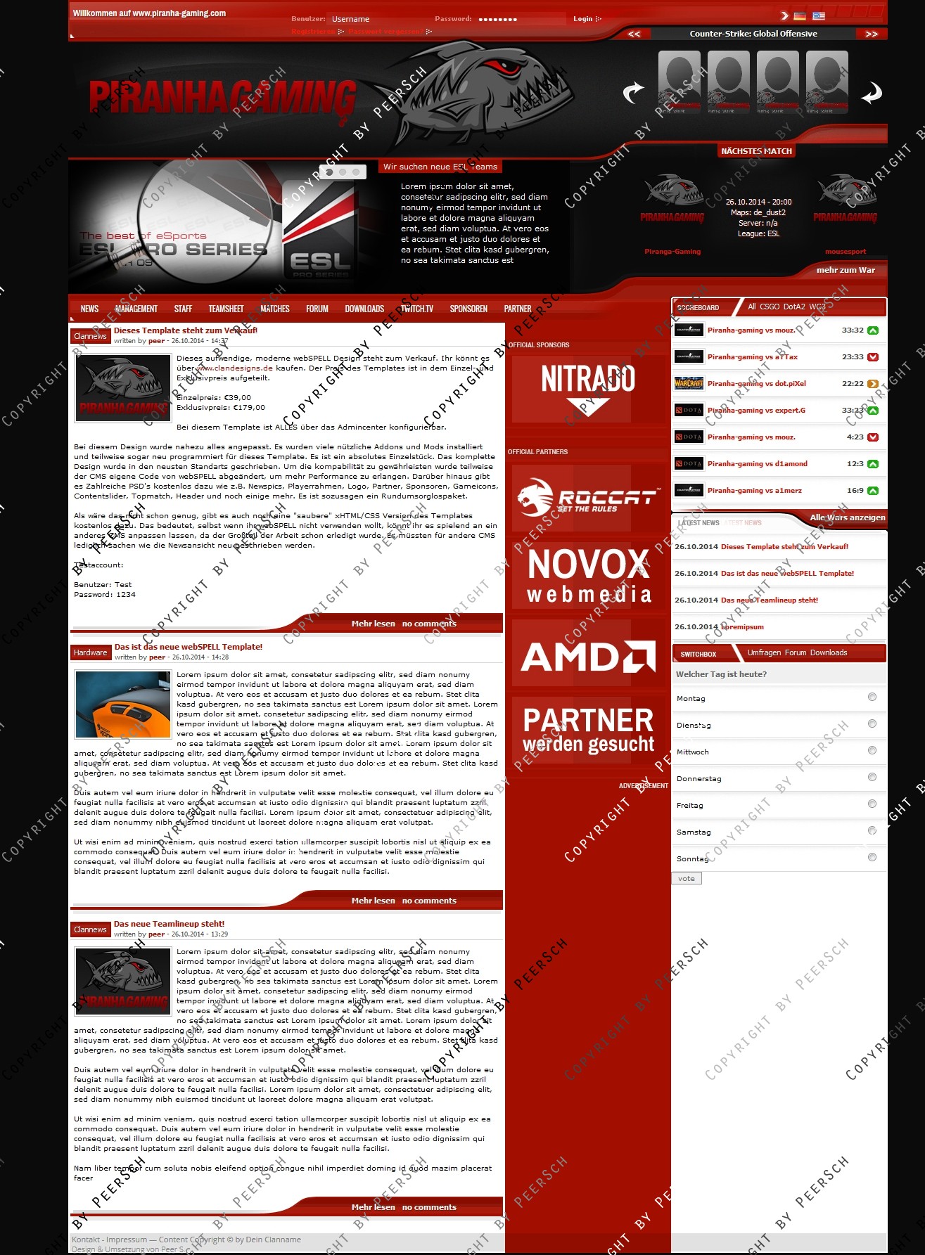 Kostenlos dazu gibt es noch folgende PSD's: Content Slider.psd, Gameicon.psd, Header.psd, Newspic.psd, Partner und Sponsoren.psd, Piranha Logo.psd, Playerrahmen.psd, Squadbanner.psd und Topmatch.psd